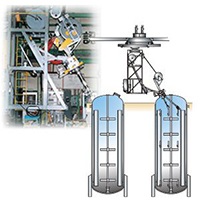 2、清洗釜規格范圍:容積:5 m³~70 m³,直徑:1 m~4 m,高度:1 m~6 m;同車間反應釜高度不同、清洗法蘭孔大小、壓力不同等均可適應。